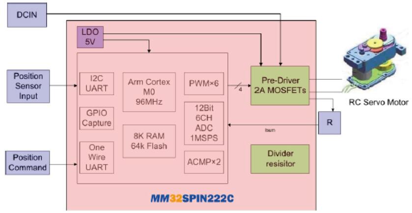 機(jī)器人舵機(jī) MM32SPIN222C  ● 高效率,集成度高