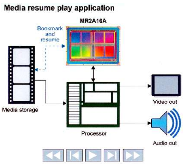 MRAM還適用于具有簡歷播放功能的娛樂應(yīng)用程序。掉電期間,指示播放媒體時(shí)間戳的書簽會(huì)快速存儲(chǔ)在非易失性MRAM中。然后幾乎立即進(jìn)行后續(xù)播放并繼續(xù)播放(下圖1)。