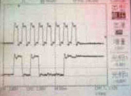 將示波器的通道1連接到寫使能信號,通道2連接到數(shù)據(jù)端D7。如圖1 所示,上方的波形為通道1接收的數(shù)據(jù),下而的波形為通道2接收的數(shù)據(jù)。設(shè)計輸入向量測試,當?shù)刂窞镺OO時,將片選端CS置為低電平,圖1 中,A區(qū)WT=*0”,RD=“1“,RD= “0”,讀出寫入數(shù)據(jù) 為“0”; B區(qū)WT=“1”,數(shù)據(jù)為“0”; C 區(qū)WT=“0”,RD=“1”,寫入數(shù)據(jù)為“1”D 區(qū)WT-“1”,RD-“1”,為了更好地觀察讀出“1”時端口的電平變化,該段不進行讀寫,在輸出端口上加弱的低電平信號; E區(qū)WT=“1”,RD=“0”,讀出數(shù)據(jù)為“1”,可明顯地看到讀出數(shù)據(jù)“1”的過程。從圖中可以看到數(shù)據(jù)“0”和“1”被成功地寫入和讀出。