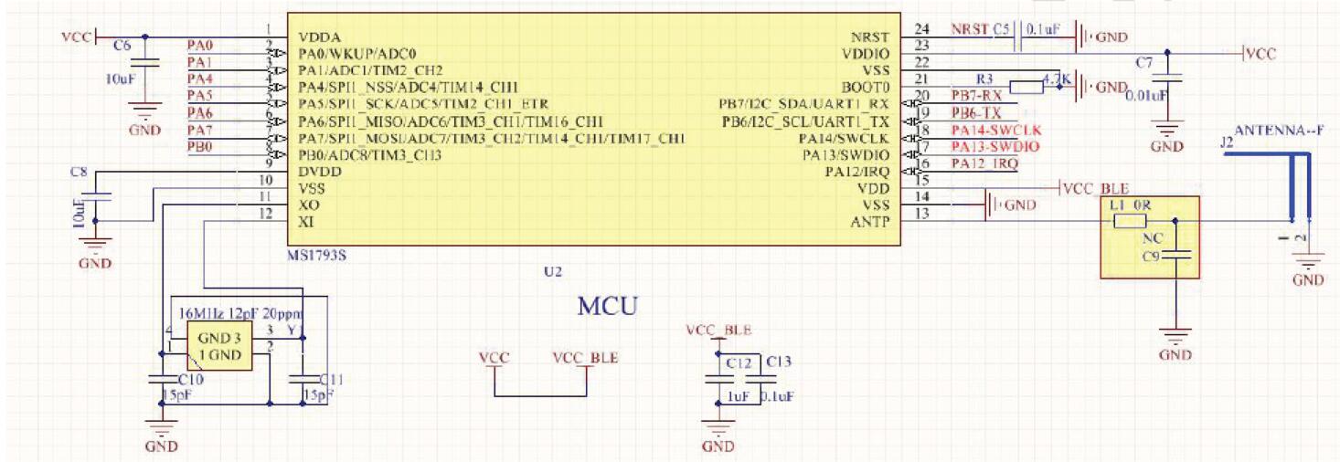 藍牙芯片,射頻采用2.4GHz ISM 頻段的頻率,2MHz 信道間隔,符合藍牙規范。MS1793S使用高性能的ARM®Cortex®-M0 為內核的32 位MCU,它的工作頻率最高可達48MHz,內置高速存儲器,豐富的增強型I/O 端口和外設連接到AHB 和APB 總線。MS1793S工作電壓為2.0V ~ 3.6V,工作溫度范圍包含-40℃~ +85℃常規型。多種省電工作模式適合低功耗應用的要求。