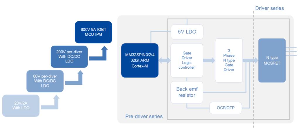 SPIN是旋轉(zhuǎn)的同義詞,再注入靈動微電子的靈魂Mind,表示靈活與專業(yè)。包含了三大主軸:專業(yè)MCU,專用驅(qū)動MCU微控制器及解決方案平臺。專用MCU的獨特之處是帶領(lǐng)了許多主流應(yīng)用,如:電動車的應(yīng)用,目前市場的占有率仍然保持領(lǐng)先地位;專用驅(qū)動型MCU微控制器電壓范圍從20V至600V。例:MM32SPIN222C集成了三相MOSFET、預(yù)驅(qū)以及LDO,可讓小空間發(fā)揮最大的功能,同時內(nèi)建了高性能32位的Arm Cortex-M0內(nèi)核為運算核心,讓開發(fā)更為簡單快捷;解決方案平臺由擁有超過10年以上算法開發(fā)經(jīng)驗的MindSPIN團(tuán)隊精心打造,按技術(shù)方式分為方波、旋波FOC以及位置控制三類,按應(yīng)用方式可分為風(fēng)機(jī)、電動工具、微電機(jī)、家電以及電動車五大類,同時靈動微電子還提供了不同的相對應(yīng)的特色