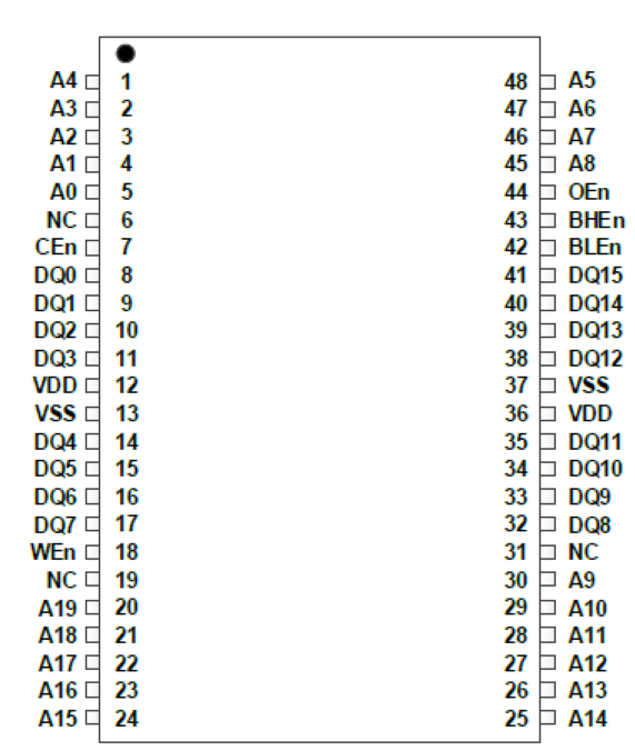 XM8A01M16V33A(1M×16)48引腳TSOP I引腳排列
