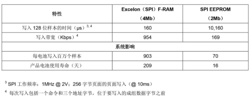 表1:比較FRAM和EEPROM的系統影響總結