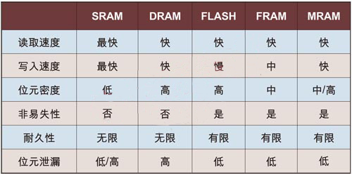表1:各種存儲(chǔ)器技術(shù)的主要性能比較